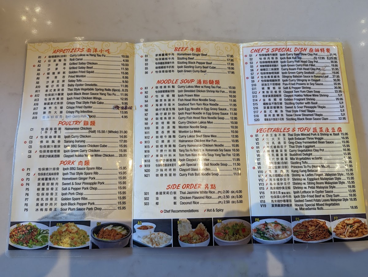 A common Malaysian snack, featuring a rich and flavorful curry soup, served with bean sprouts, jicama, fish rolls, bitter gourd, tofu puffs, and bean curd skin...